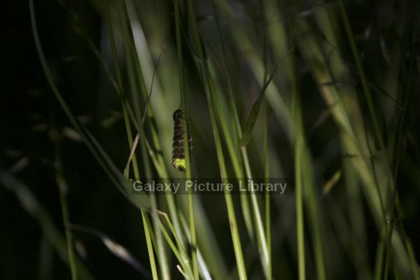 Female glow worm (Laympyris noctlicua) at Brush Hill, Bucks, UK.