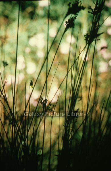 Glow worm (Lampyris noctiluca). This is the common British glow worm, also found throughout many parts of Europe. Only the female, shown here (centre left), glows for a few nights in June, July or August, to attract the flying males, who do not glow.